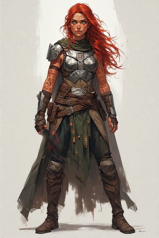 Standing tall at 6 feet with a muscular, yet lithe frame, Xasin carries herself with the poise of a warrior and the grace of a mystic. Her fiery red hair cascades down her back in soft waves, contrasting sharply with her emerald green eyes that seem to hold the wisdom of the ancients. Her skin is a sun-kissed tan, a testament to her time spent on the harsh, unforgiving planets of the Outer Rim. Her most prominent feature is the intricate web of Mandalorian runes that cover most of her body. These tattoos, a mark of her warrior lineage, seem to pulse with an inner light when she taps into the Force. Her only armor is a beautifully crafted breastplate, made of beskar steel and adorned with ancient Druidic symbols, which she wears both as protection and a declaration of her unique identity. It is said that each rune and emblem on her armor holds a story from her ancestors, whispering the history of her clan to those who can understand their ancient language.